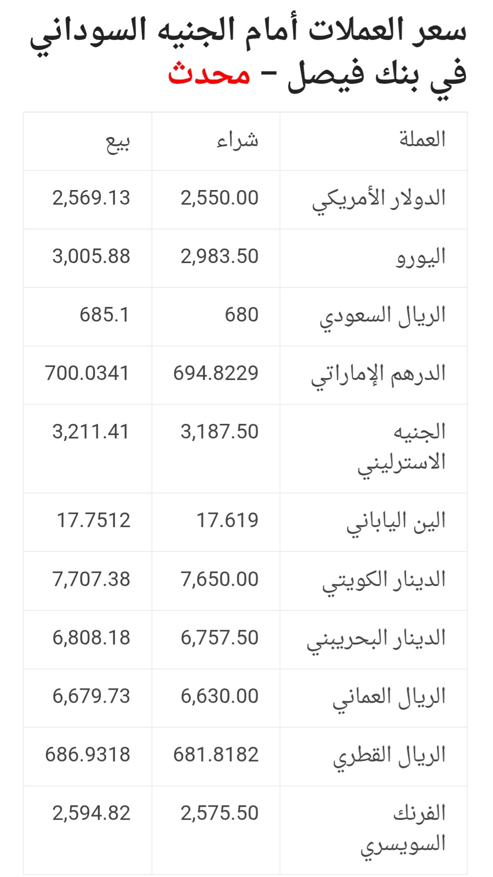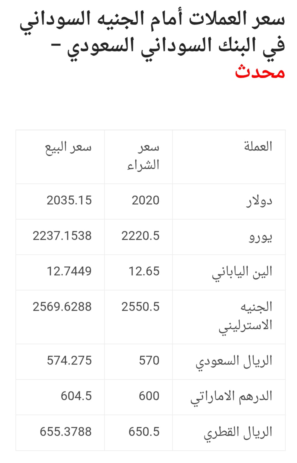 أسعار صرف العملات الأجنبية مقابل الجنيه السوداني في البنوك التجارية.