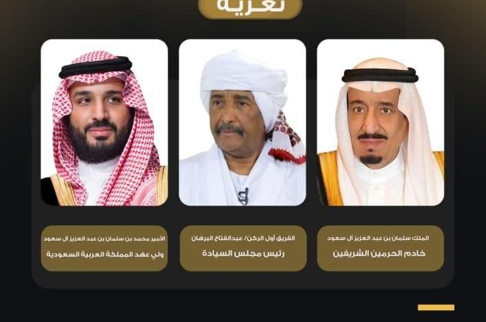 وأعرب البرهان، نيابةً عن حكومة وشعب السودان، عن بالغ حزنه وعميق تعازيه ومواساته للقيادة السعودية وللشعب السعودي الشقيق، سائلاً الله العلي القدير أن يتغمد الفقيدة بواسع رحمته، وأن يسكنها فسيح جناته، وأن يلهم أهلها وذويها الصبر والسلوان.