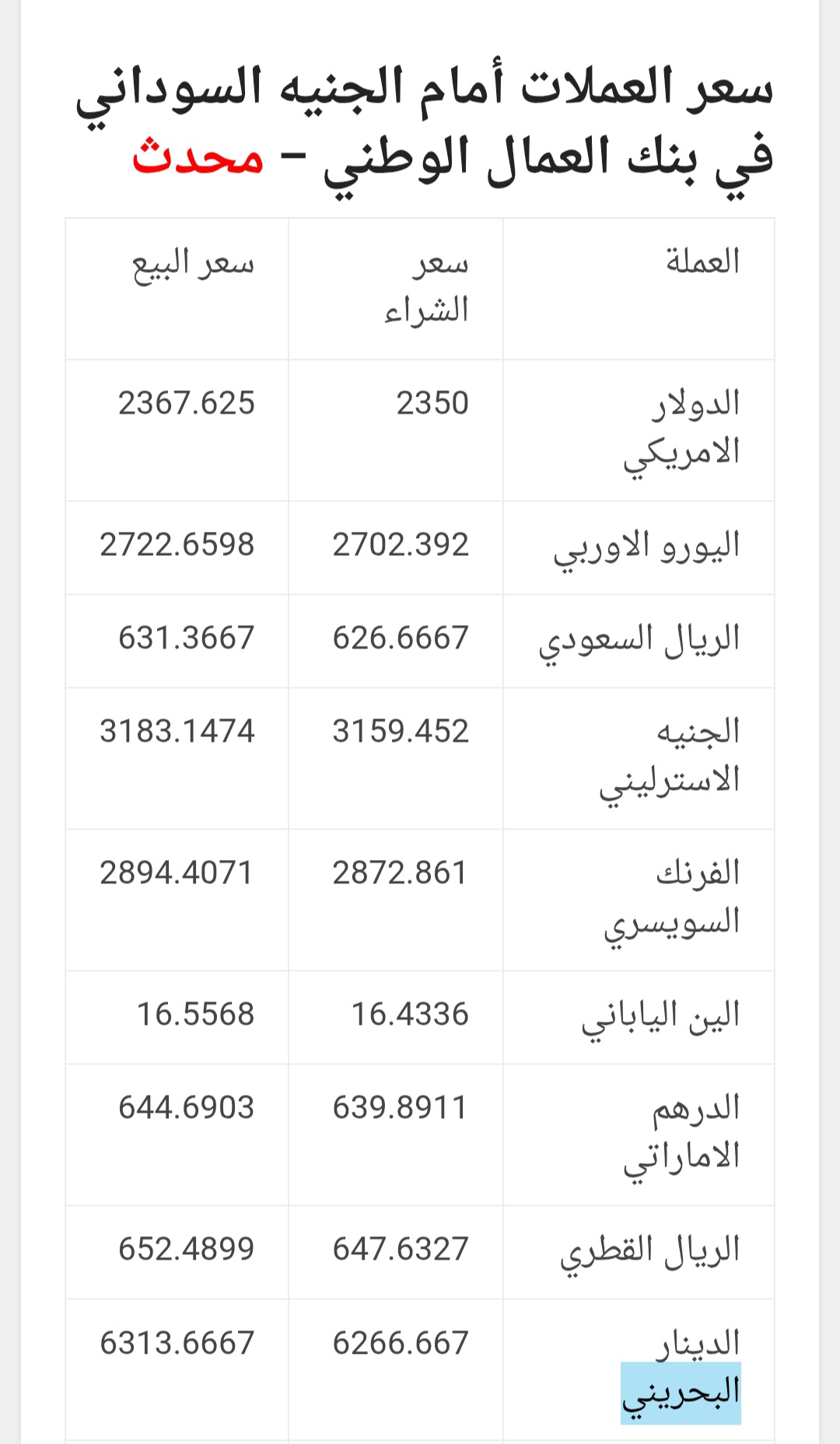كما جاءت أسعار العملات الأجنبية مقابل الجنيه السوداني في بعض البنوك التجارية كالآتي