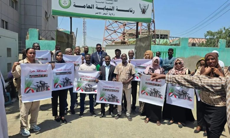 نظّم الصحفيون السودانيون، الخميس، وقفة احتجاجية كبرى أمام مباني النيابة العامة بمدينة بورتسودان، بالتزامن مع وقفات مماثلة في عدد من ولايات البلاد، رفضًا لمحاكمة الصحفيين بموجب قانون جرائم المعلوماتية، ومطالبةً بإصلاحات قانونية تحمي حرية الصحافة.